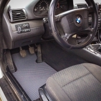 ЭВА — материал будущего. Полимерные коврики удерживают воду и грязь внутри ячеек так, что загрязнения не попадают на обувь и одежду даже на крутых виражах. Сами коврики EVA надежно закреплены на многоразовые липучки и подходят только для конкретного авто. У нас вы можете заказать автоковрики для BMW 3 (Е46) 2WD 1998 - 2005 в Белгороде с доставкой от производителя.